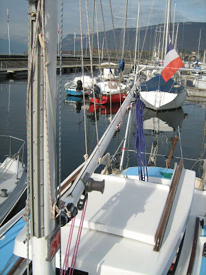 Une fois rentré au ponton, j'ai commencé à enlever les voiles et les mettre dans leurs sacs. Et là, le Bobato est nu! Certes, tous mes voisins étaient en train d'hiverner leurs bateaux. Tout le monde me disait, 'c'est dommage, j'aurais voulu faire encore une petite sortie vu le beau temps'. En effet, ça fait drôle de boucler la saison bien sympa... Eh bien, il y a des travaux d'hiver sur le Bobato qui m'attendent! Il n'y a qu'à le faire sortir de l'eau, prévu pour dans quelques jours. :-)