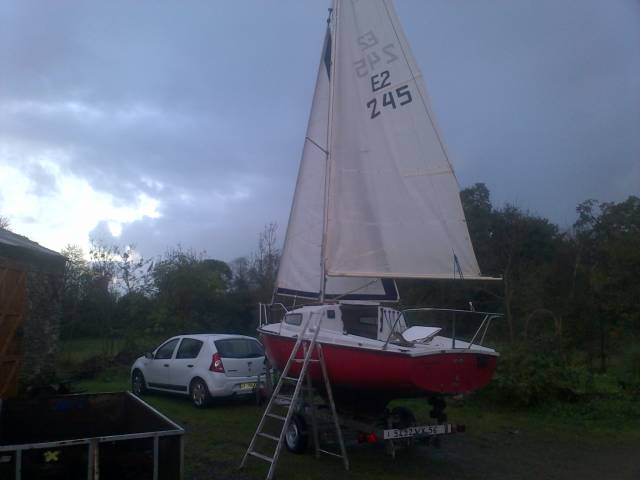 peu pourri. ça fait rien l'autre a une coque plutôt saine avec contremoulage , dérive en bon état mat et câblerie correcte . je suis en train de gréer et cale sur les systèmes d'étarquage de la GV , si certains ont des clichés de près pour partir d'un système déjà expérimenté . autre question j'ai avec un 6 cv mercury , il pète bien mais ne pisse pas , une fois à la selle dans le bain approprié je me demande si le Mercury série sprint édition ne dispose pas d'un système de thermostat avant de déclencher son système de refroidissement ? je n'ose pas le faire chauffer trop avant de savoir , de peur de déclencher une trop chaude pissée, aux conséquences fatales. sinon comme j'ai un enrouleur pour les sorties peper c'est bien mais en efficience pas très optimisé ; j'aimerais me monter un second étai de réserve afin de pouvoir hisser la famille des génois tourmentins et foc , ça me semble possible en mettant mon enrouleur très en avant et le second étai en retrait ça me semble possible mais est ce que certains l'ont expérimenté ? ce second étai serait ramené sur le mat pour ne pas gêner en cas de non utilisation .merci d'avance pour vos éventuelles réponses , un petit bonjour à Pierre et merci pour ta