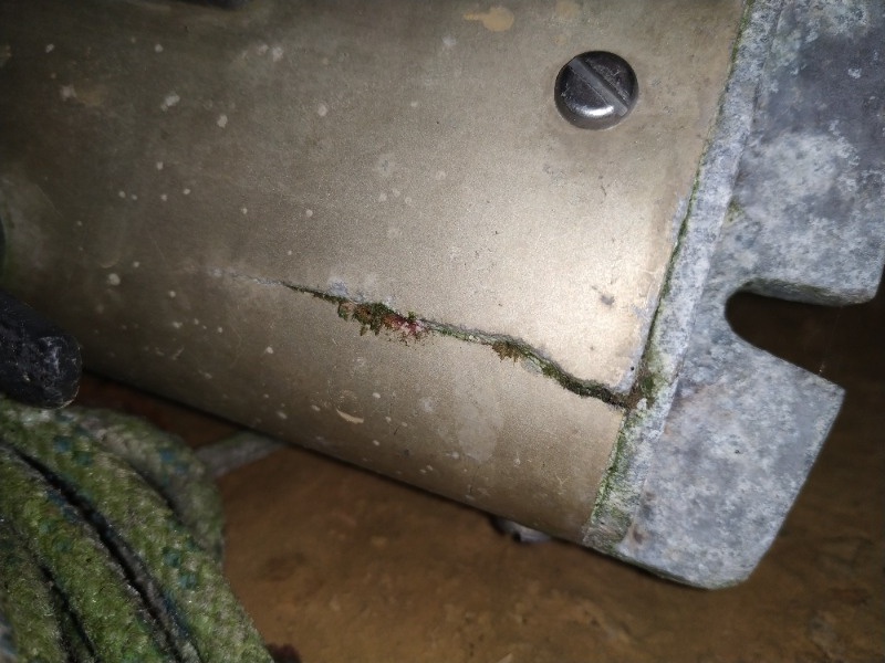 Voilà quelques photos du bas du mât avec les fissures.