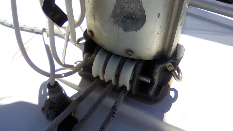 Le problème rencontré, non visible sur cette 1ère photo, est une usure du pied de mât qui semble être rongé autour des réas. De plus je souhaite pouvoir démâter seul et l’œil, incorporant l'axe en inox de rotation, est cassé à moitié (ce pied a souffert auparavant car je l'ai connu comme cela). Je n'ose pas m'aventurer dans cette manœuvre d'inclinaison sans un pied sain.