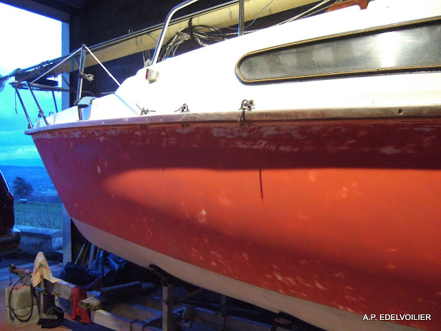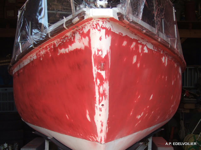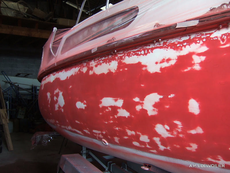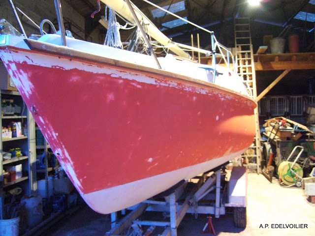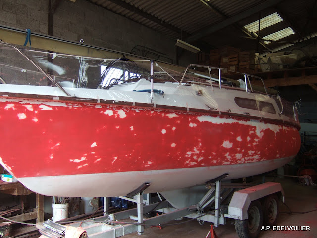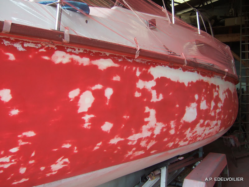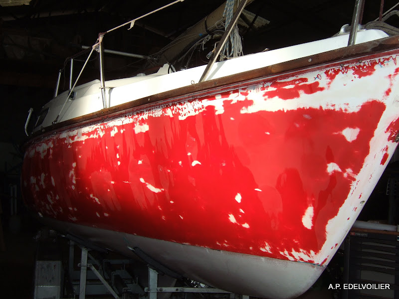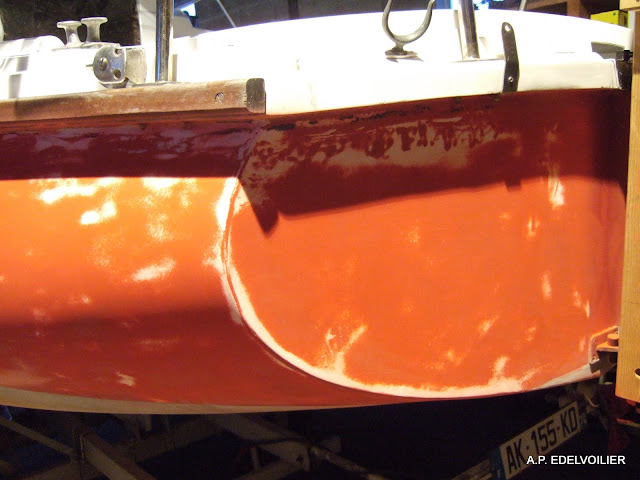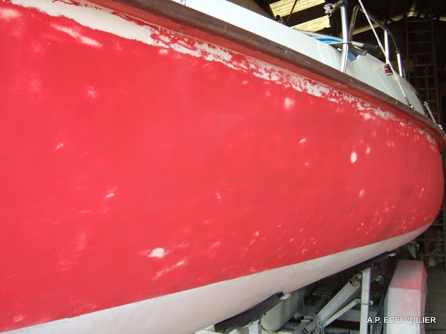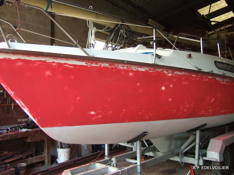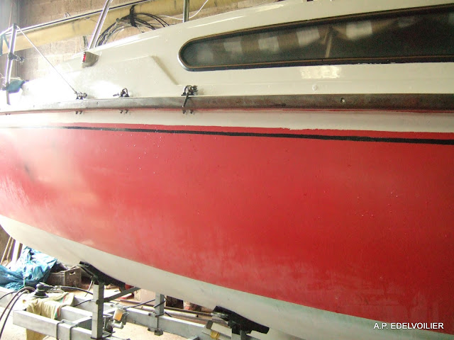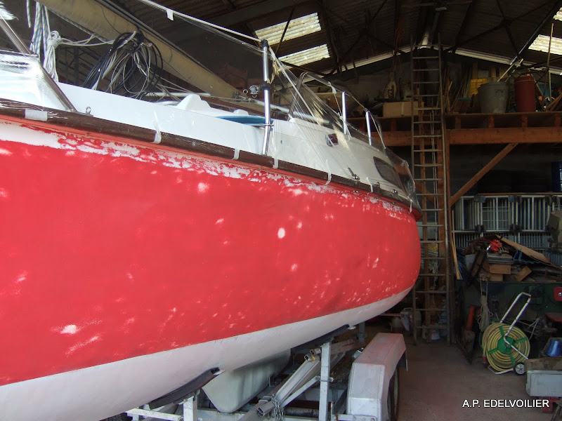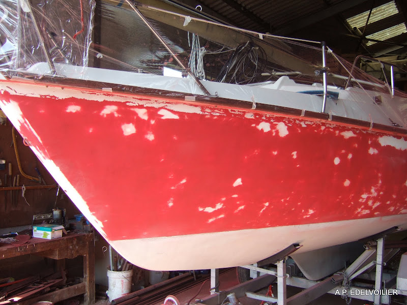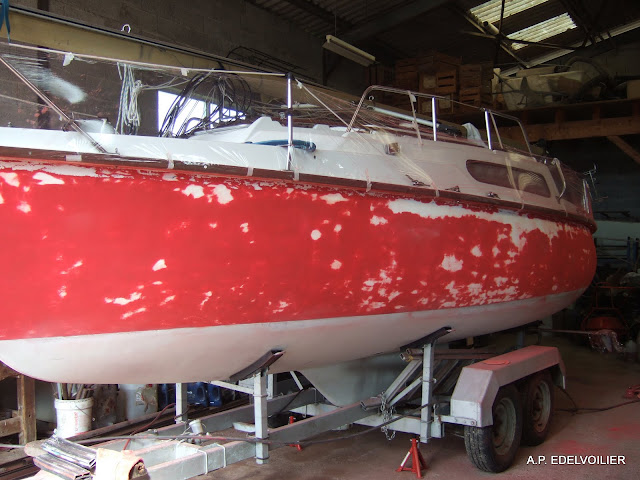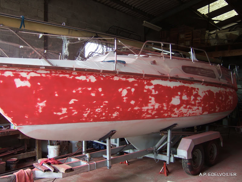 Peinture de coque réalisée sur un Edel 4 DL de 1974 à l'aide d'une peinture mono composant Toplac Internationnal