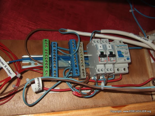 Le disjoncteur différentiel 32A  vient de prendre place ainsi que les barrettes de connexion du 220V