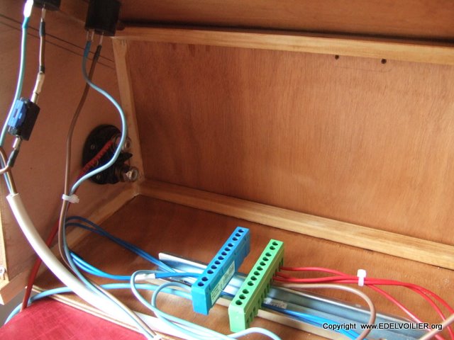 2 borniers electrique de 10 cnx pour regrouper les + et - (le vert est prévu pour la terre mais là yavait plus que ca comme couleure alors....)